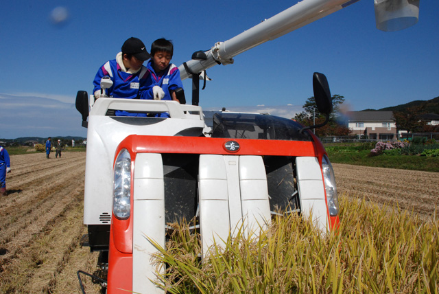 酒田市立松山小学校5年生が農家の方の指導を受けながら、5月19日に田植え、10月16日に稲刈りの体験学習を行いました。